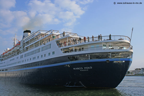 Das Kreuzfahrtschiff Marco Polo im Warnemünder Hafen